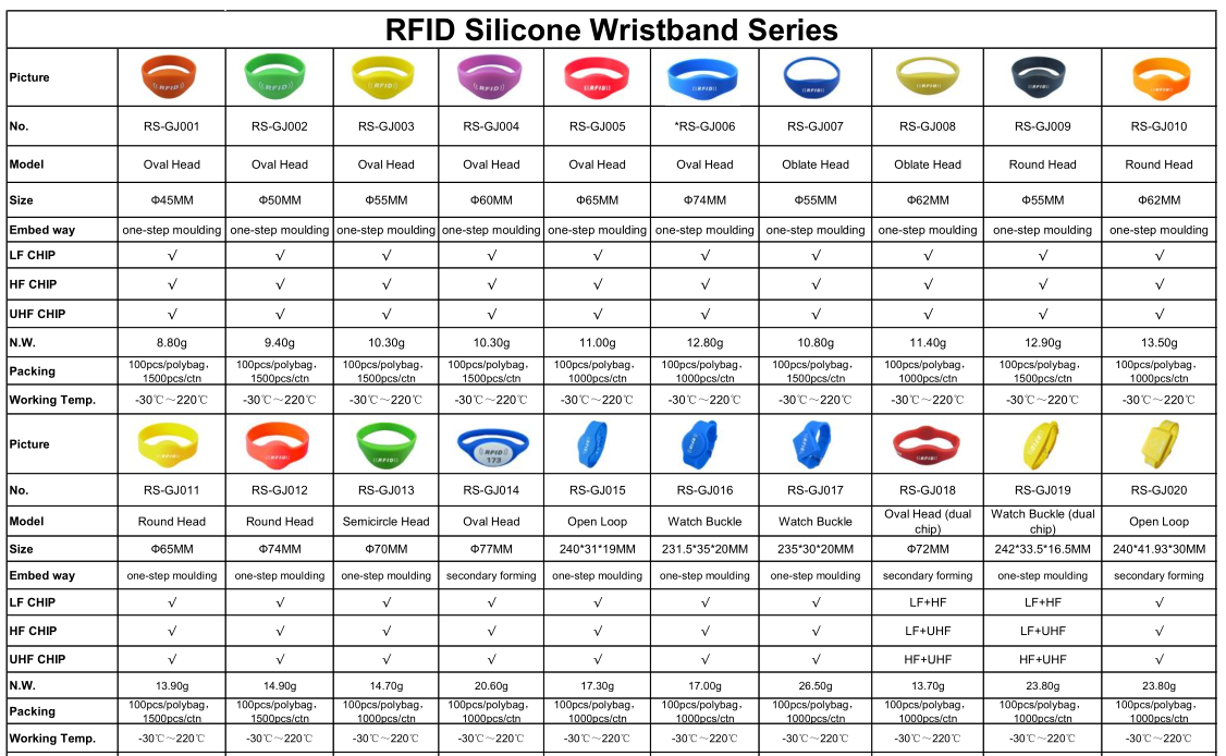 RS-SW01-06 Oval Head RFID Silicone Wristband Product No.:2017114152154 Online Inquiry Details Previous Product:RS-SW07-08 Oblate Head RFID Silicone Wristband Next Product:RS-PVCW08 RFID PVC Wristband Related Products RS-PLW01-03 RFID Plastic Wristband RS-SW09-12 Round Head RFID Silicone Wristband RS-NW05 RFID Nylon Wristband